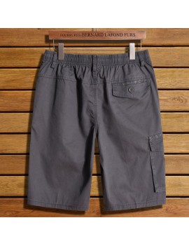 Mens 100%Cotton Breathable Solid Color Elatic Waist Casual Shorts Plus Size Loose Shorts