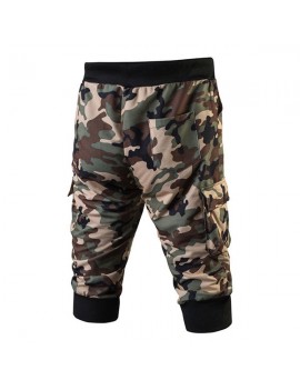 Mens Camo Printing Knitted Drawstring Zipper Pocket Casual Sport Shorts
